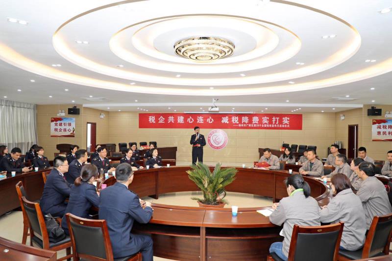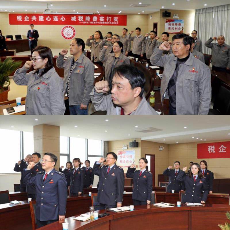 2019年全國(guó)兩會(huì)剛剛落下帷幕,3月28日上午,廣陵區(qū)第28個(gè)全國(guó)稅收宣傳月啟動(dòng)儀式和稅企共建活動(dòng)在我公司隆重舉行;顒(dòng)以“稅企共建心連心減稅降費(fèi)實(shí)打?qū)崱睘橹黝},廣陵區(qū)稅務(wù)局局長(zhǎng)樊正軍、副局長(zhǎng)王正軍、廣陵區(qū)第一分管局局長(zhǎng)邱嵩、總公司財(cái)務(wù)總監(jiān)楊紅霞、我公司財(cái)務(wù)總監(jiān)章勇、廣陵第一稅務(wù)局黨支部、本司第四黨支部全體黨員共同參加本次活動(dòng)。