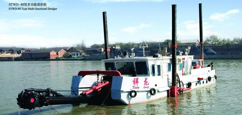 我公司研制的STWD-80多功能清淤船是"十五"期間國(guó)家重大技術(shù)裝備研制項(xiàng)目,通過(guò)部級(jí)鑒定,該船具備水炮沖刷、射流拖淤、斗輪挖泥三種清淤功能,適用于內(nèi)河及潮水泥含量高的江河入?、港道和堤岸,清淤效果顯著。射、拖、挖裝置共用一套動(dòng)力系統(tǒng),設(shè)備利用率高。